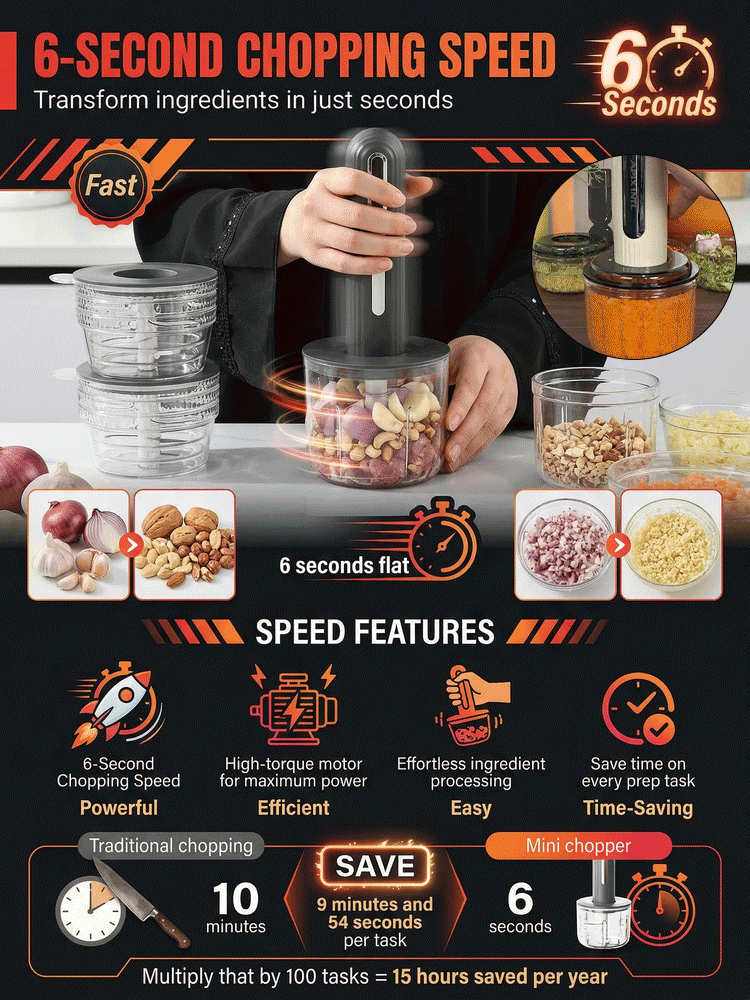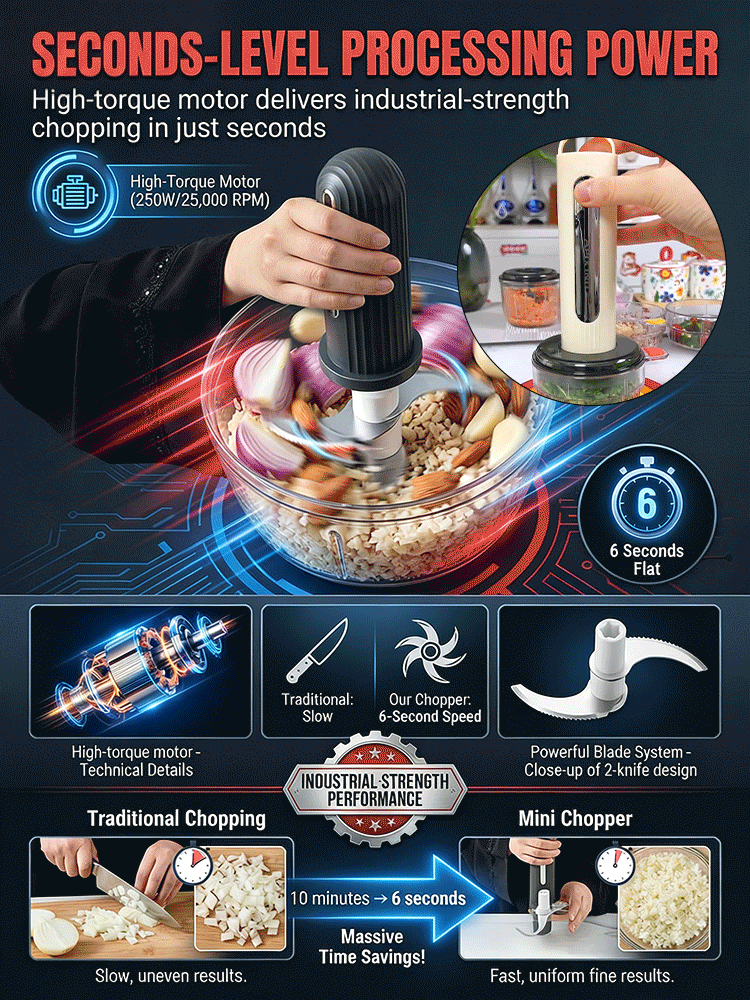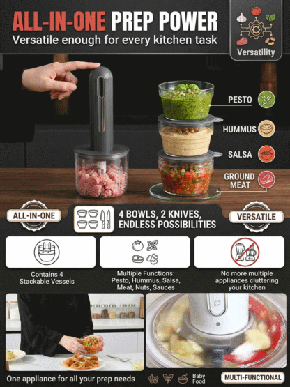 Mini Kitchen Chopper - 4 Bowls, 2 Blades, 6-second Quick Cut