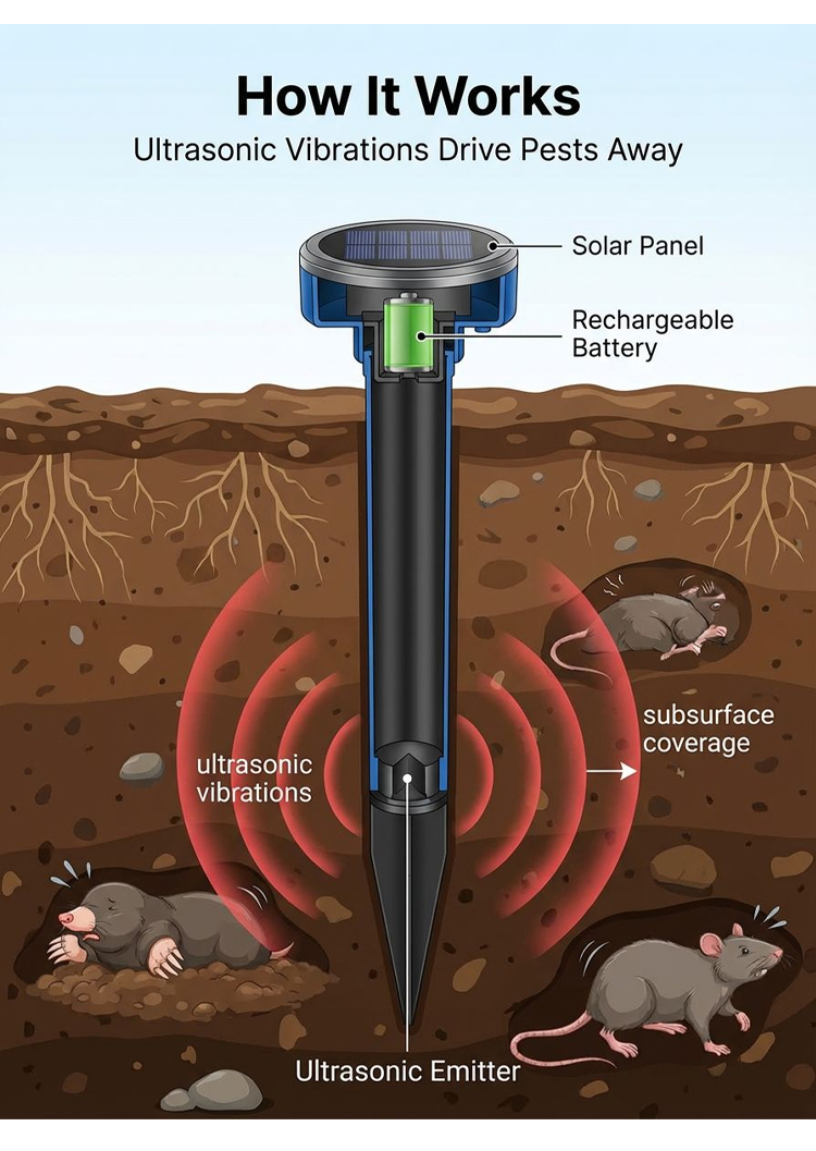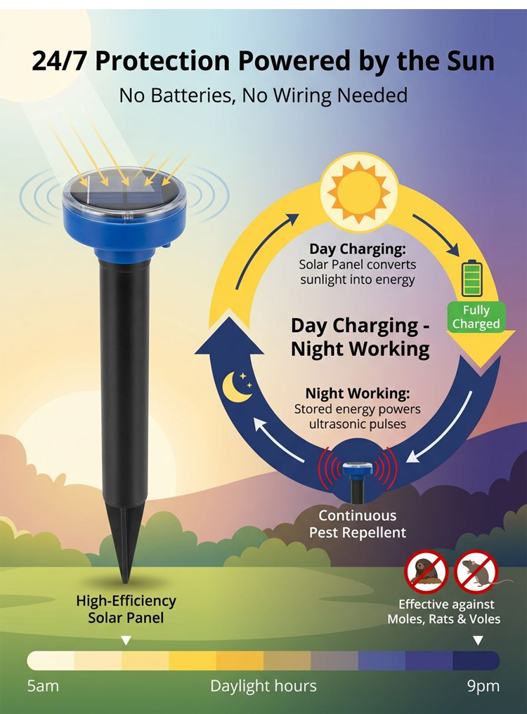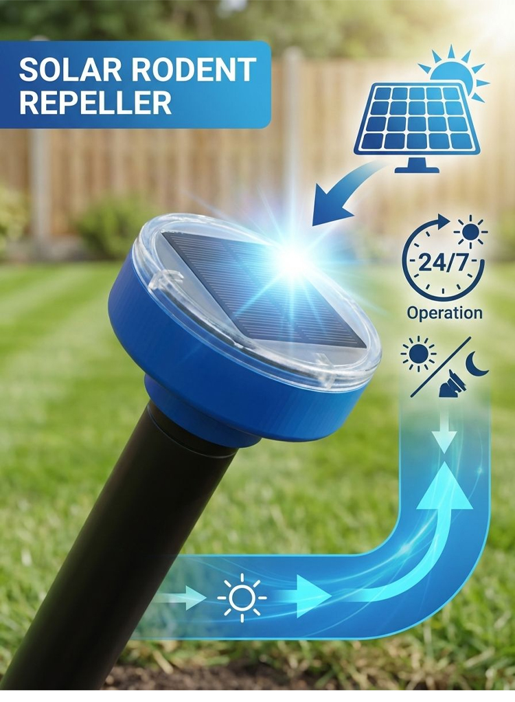 【Completely Eliminate Pests】Solar Powered Garden Rodent Repeller